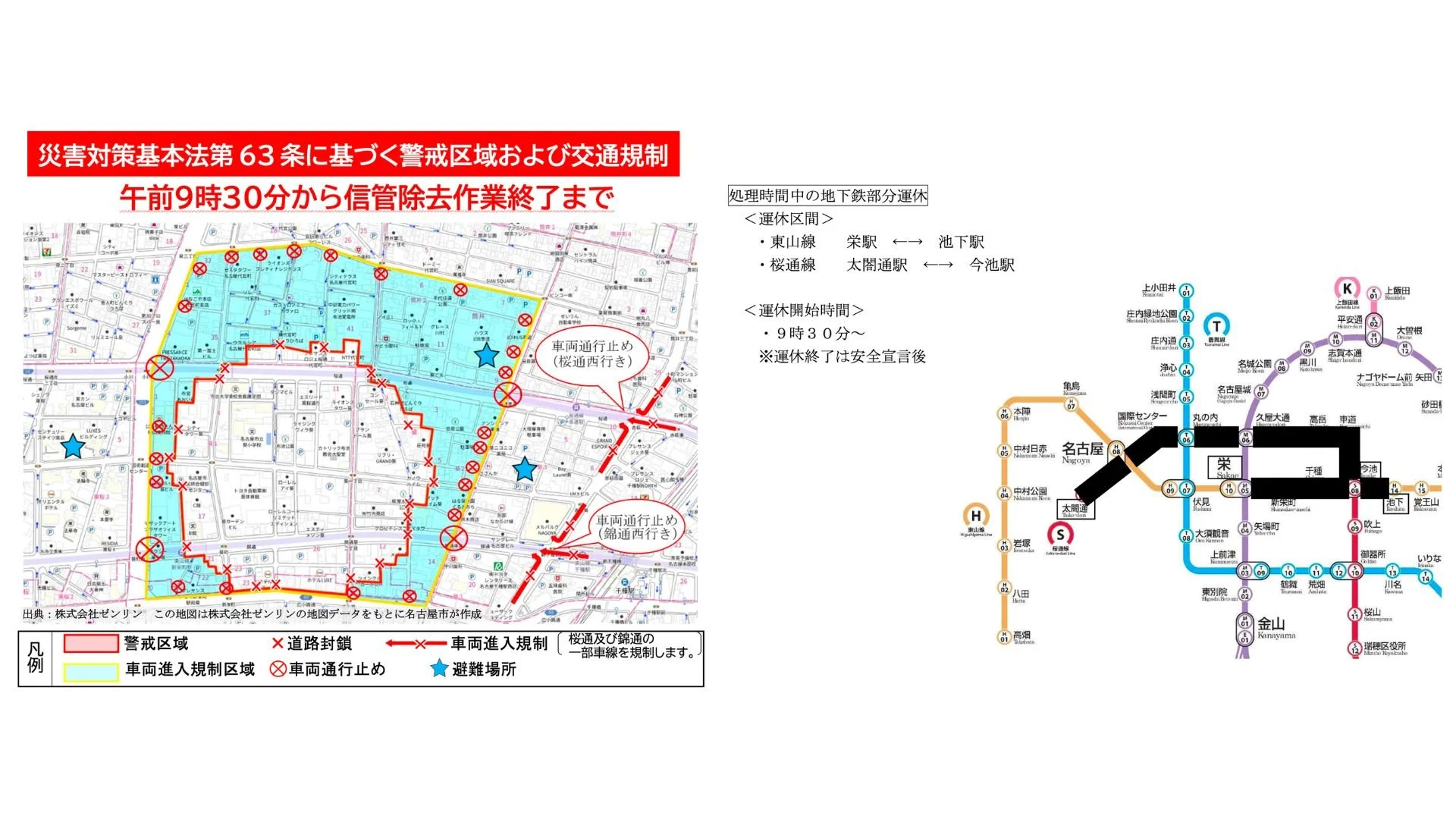 4月19日の日曜日の午前中に、不発弾の撤去作業が東区にて予定されています。そのため、地下鉄の東山線(栄駅-池下駅)桜通線(太閤通駅-今池駅)